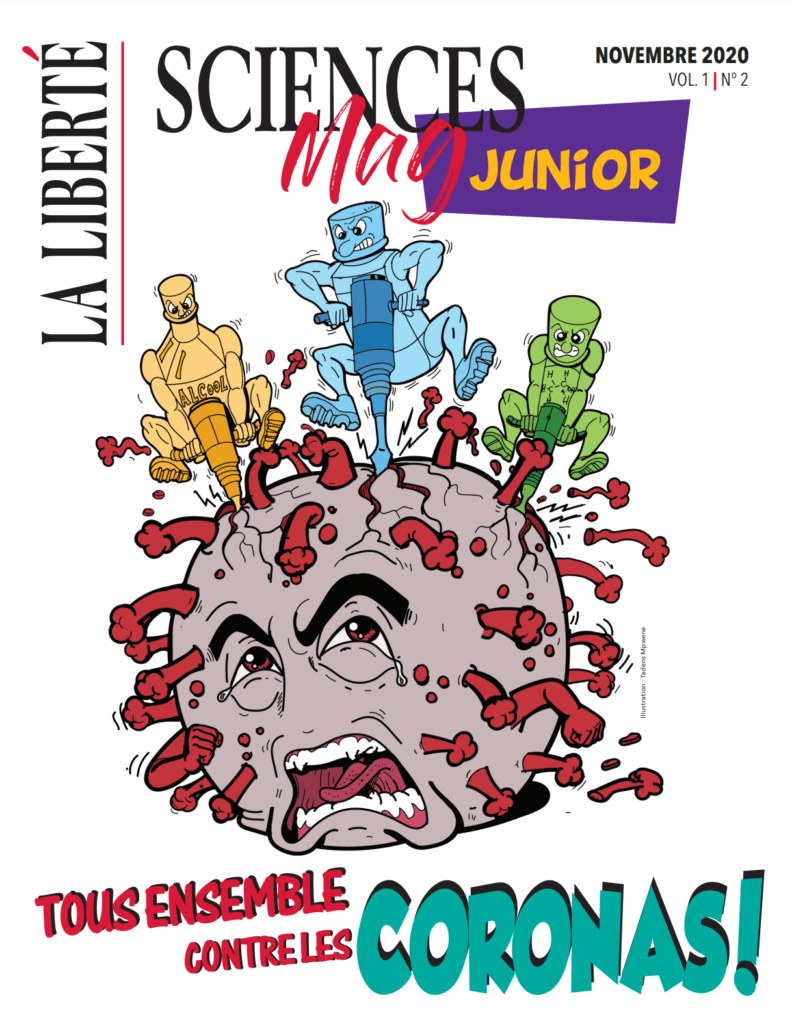 Le jour de son 107e anniversaire, La Liberté a sorti son tout premier magazine de sciences pour enfantsSciences Mag Junior À l’attaque des Coronas! au sujet de la COVID-19 avec des partenaires de haut vol dans le monde de la recherche médicale, de la vulgarisation scientifique, de l’information, de la communication et des arts visuels. L’objectif de ce premier numéro : expliquer comment le corps humain fonctionne lorsqu’il est attaqué par des virus.